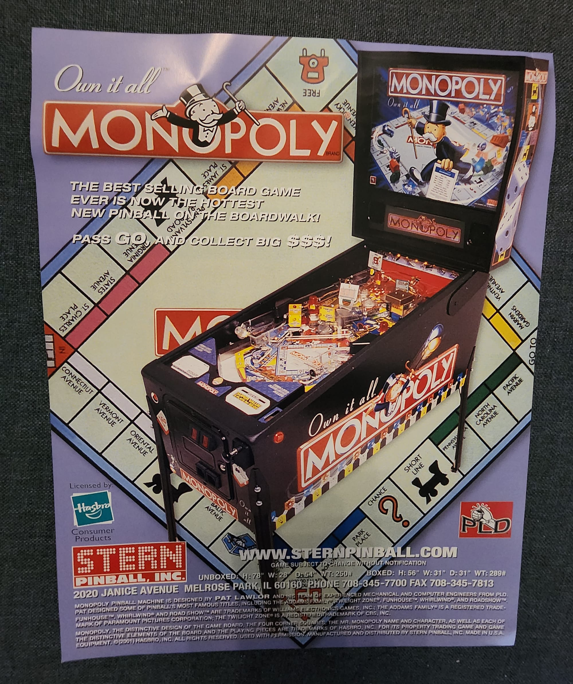 S53 “Monopoly - Own It All” Pinball Machine Flyer (2001)